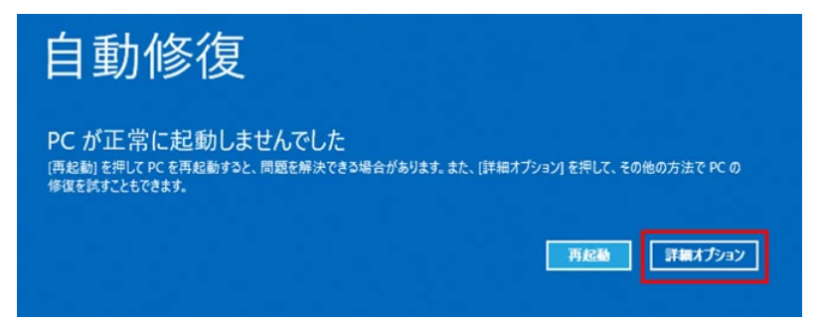 Step1:「自動修復」画面から「詳細オプション」をクリックします。