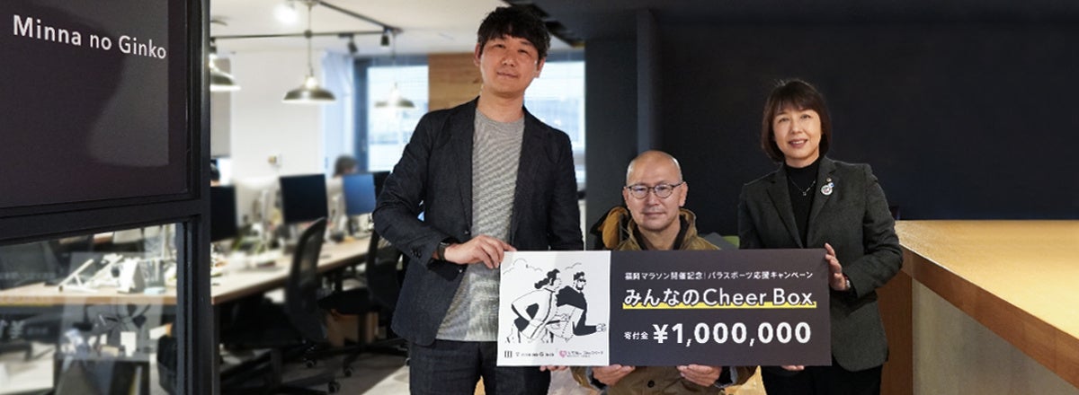 本寄付は、2022年9月27日~2023年1月11日に実施した『福岡マラソン開催記念!パラスポーツ応援キャンペーン』の一環として行った『みんなのCheer Box』の取組み(*)で、お客さまからお預かりした預金残高にもとづいてみんなの銀行から寄付したものです。