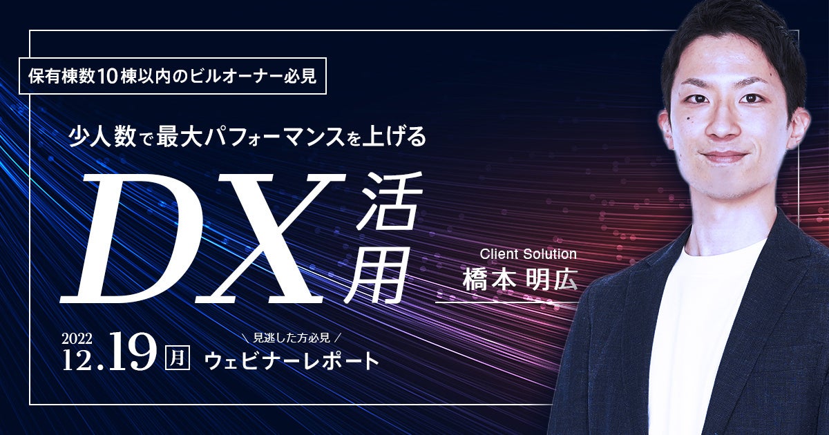 - 『保有棟数10棟未満のオーナー向け 少人数で最大パフォーマンスを上げるDX活用』ウェビナーレポートのダウンロード