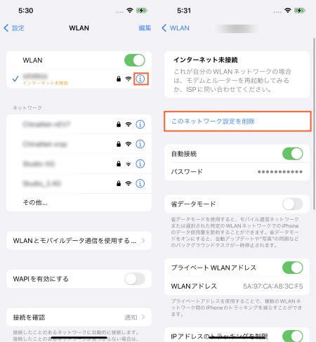 - 対処法6:安定なWi-Fiを接続・Wi-Fiを削除して再接続する