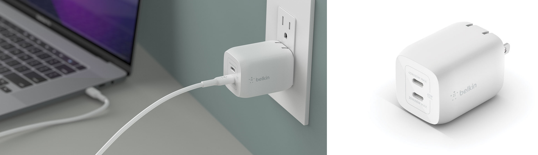 ■Belkin BOOST↑CHARGE™ PRO 65W DUAL USB-C GAN WALL CHARGER WITH PPS