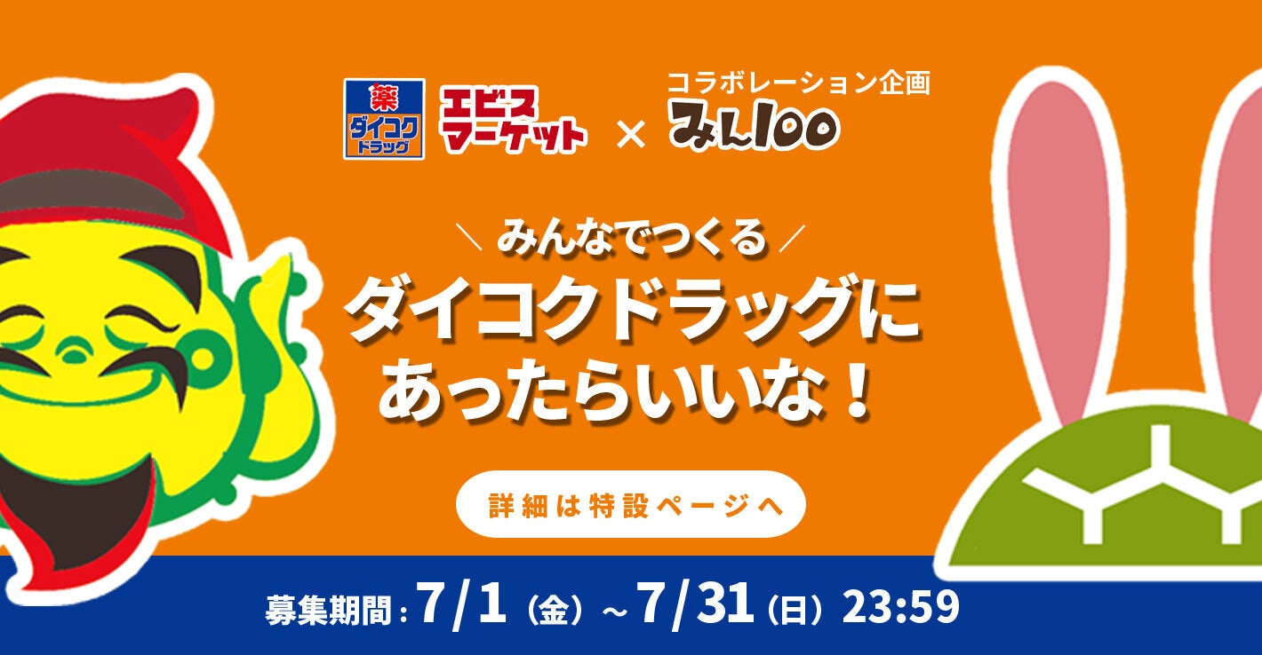 「実際にダイコクドラッグ(エビスマーケット)に並んでほしい!」というリアルな声を商品化するため、普段のみん100のモノづくりとはまた違った方法を挑戦していきます。