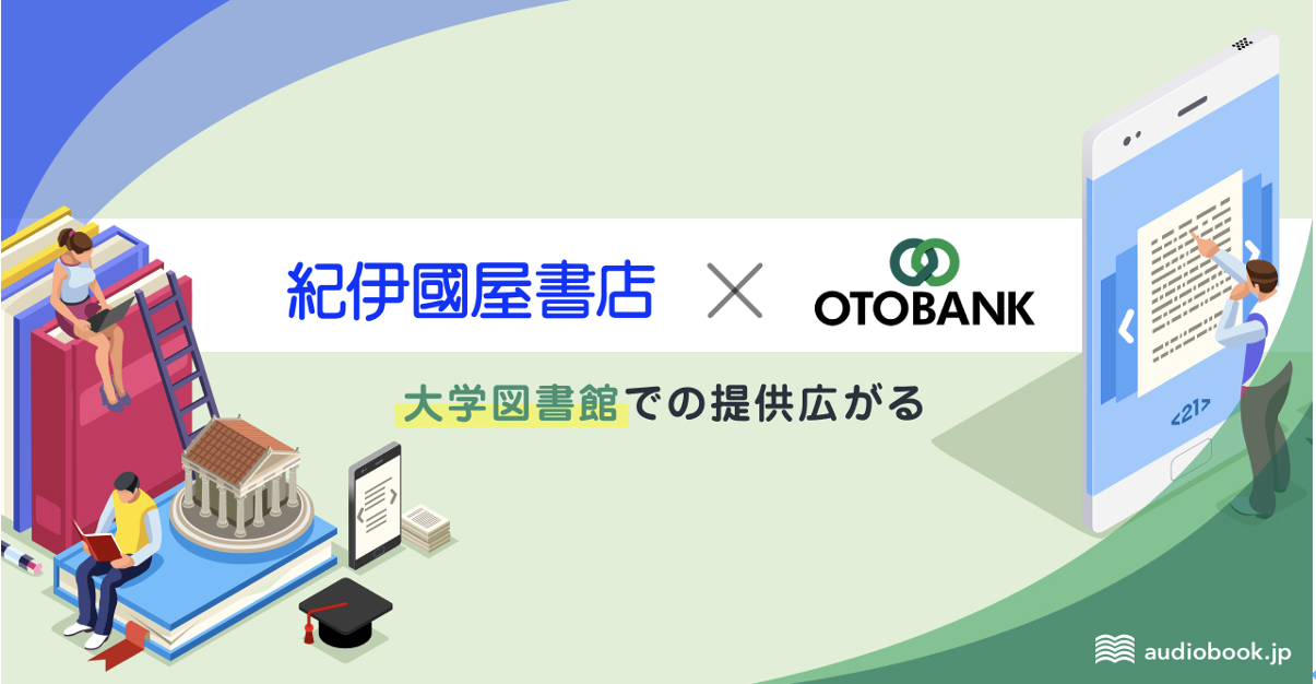 オトバンクと紀伊國屋書店は、電子書籍配信サービス「KinoDen(https://kinoden.kinokuniya.co.jp/product/index.html)」を通し、同サービスを導入している全国約400個所の大学図書館、企業、公共図書館等機関を対象にオーディオブックの提供を開始いたします。