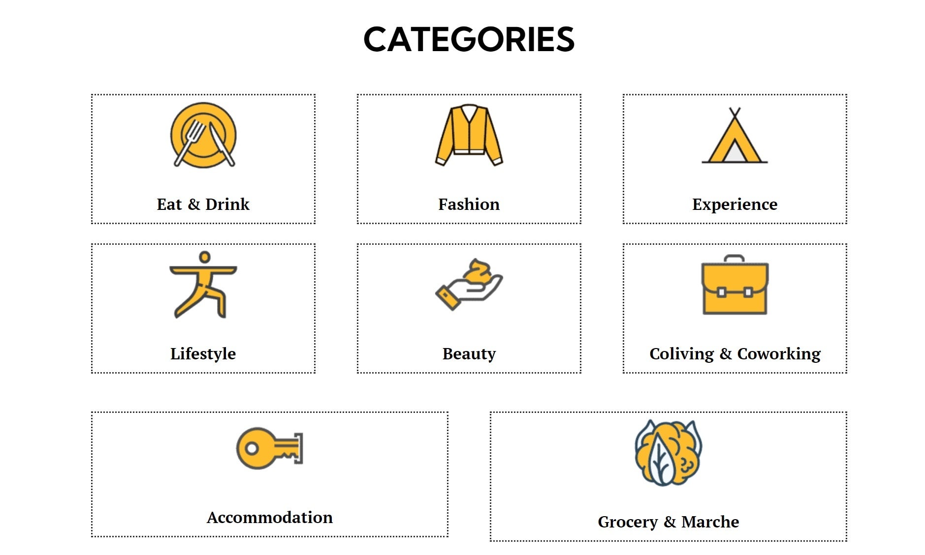 Eat&Drink(飲食店)、Fashion(ファッション)、Experience(体験)、Lifestyle(生活)、Beauty(美容院、サロン等)、Coliving&Coworking(シェアハウス、コワーキングスペース等)、Accomodation(宿泊施設)、Grocery&Marche(食料品店、ファーマーズマーケット)の8カテゴリーごとに、おすすめのブランドを紹介。日本全国から厳選された38ブランドを掲載しており、今後も新しいブランドを追加予定です。ブランドはエリアごとに検索することもできます。