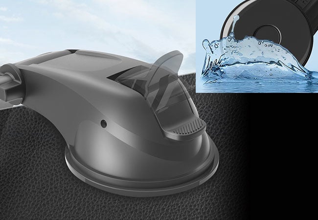 スタンド部分はゲル吸盤を採用。粘着力が弱まっても吸盤を水洗いすることで粘着力が復活するので、何度でも取り付け・取り外しが可能。ドライバーによって設置場所を変えたり、別の車に搭載することもできます。