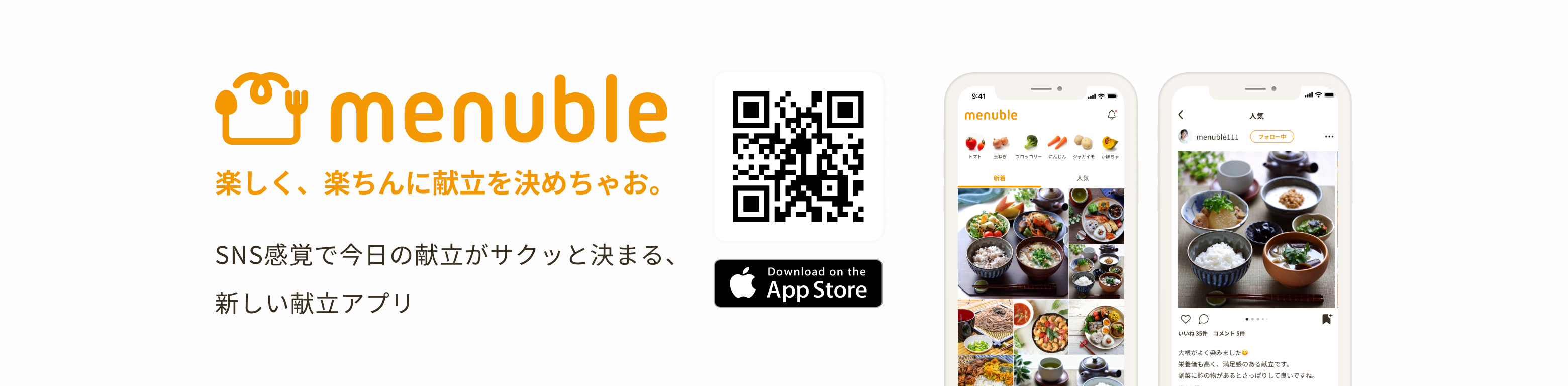menubleは、SNS感覚で色んな献立が簡単に見つかる新しい献立特化型サービスです。