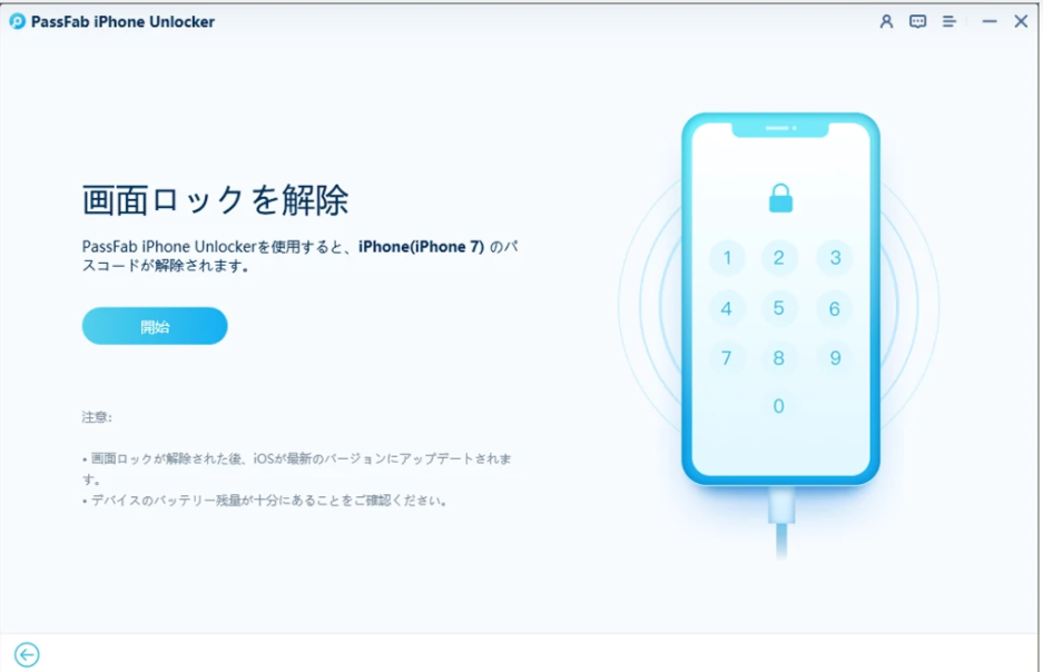 Step1:パソコンからPassFab iPhone Unlock を起動し、「解除開始」を選択します。
