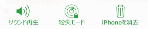 特定できると、iPhoneの場所がマップに表示されるので、該当のiPhoneをクリックします。するとiPhoneの名称と合わせて、以下のアイコンが表示されるので、ここで「iPhoneの消去」を選択します。これでiPhoneの初期化が完了します。