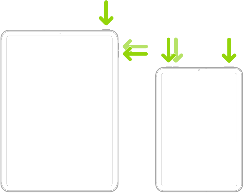 Face ID搭載iPadやiPad miniの場合は、音量を上げるボタンを押してすぐに離します。次に、音量を下げるボタンを押してすぐに離します。最後に、Appleロゴが表示されるまで電源ボタンを長押しするとiPadが再起動します。