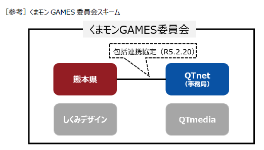 熊本県と、株式会社QTnet(本店:福岡市、代表取締役社長:岩﨑和人)は、「くまモンランド化構想バーチャル空間拡大の推進に関する包括連携協定」を締結し、「くまモンGAMES委員会」を立ち上げます。