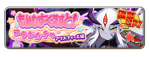 「【魔王】アリスフィーズ」「【四天王】アルマエルマ」「【四天王】エルベティエ」が登場し、「【魔王】アリスフィーズ」の出現確率がアップしている「もんむす・くえすと!コラボガチャ アリスフィーズ編」を開催中!