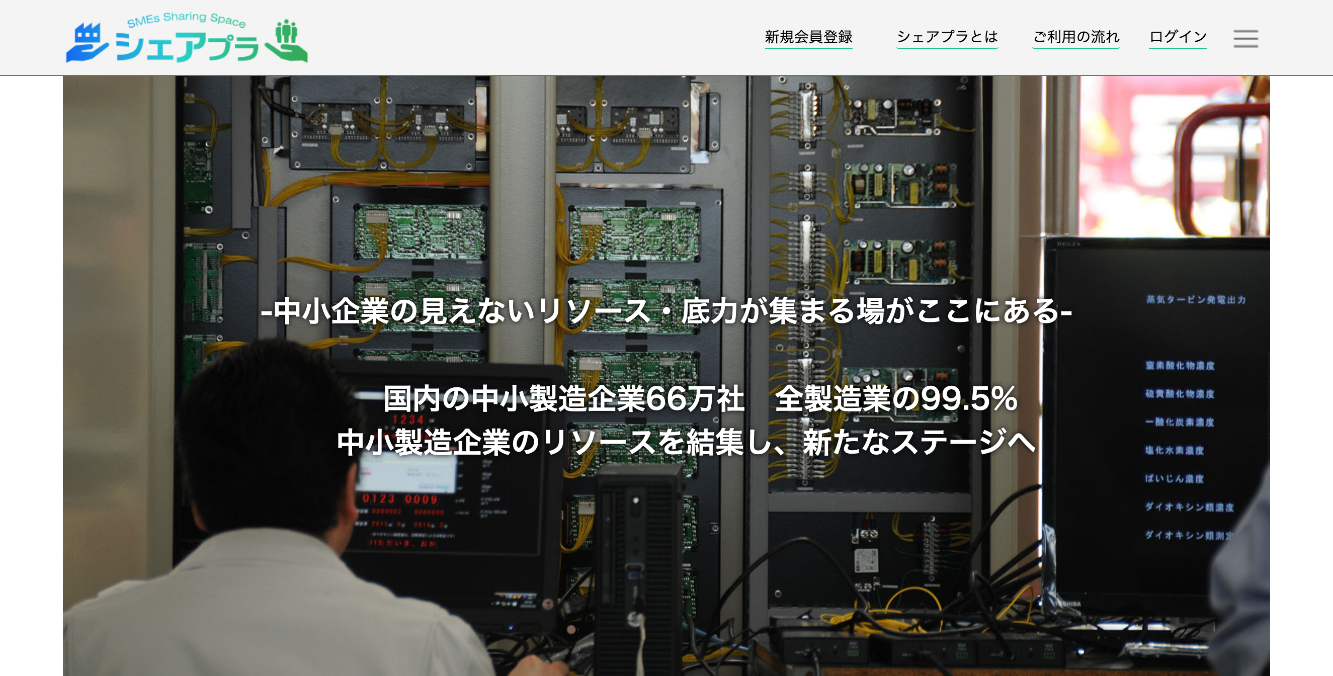 「シェアプラ」は、中小製造企業のリソースとスキルをシェアリングして、新たな成長を支えるプラットフォームサービスです。