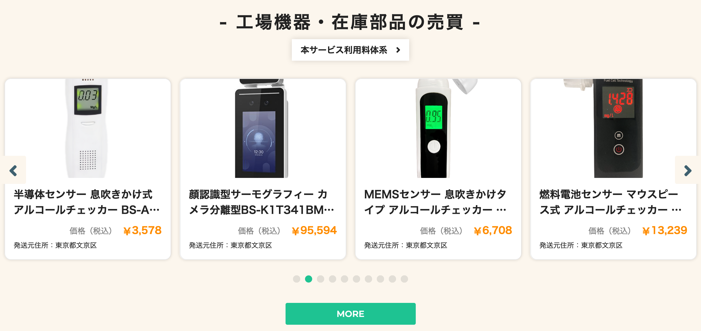 また、工場機器・在庫部品などを必要とする企業にとっても、新品を購入するより低コストで必要な機器を購入することができます。
