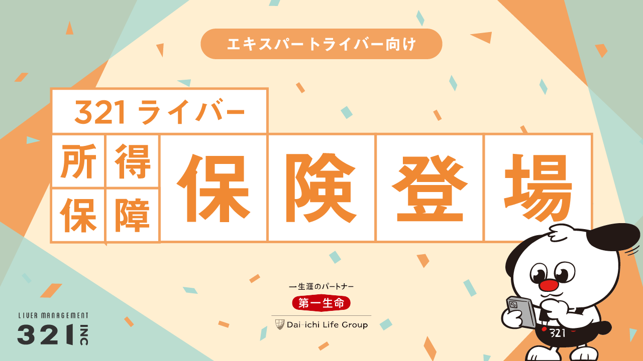 株式会社321は、第一生命保険株式会社(代表取締役社長:稲垣 精二、以下「第一生命」)と協業を開始したことをお知らせします。その第一弾として第一生命から『321ライバー所得保障保険』の提供を開始しました。