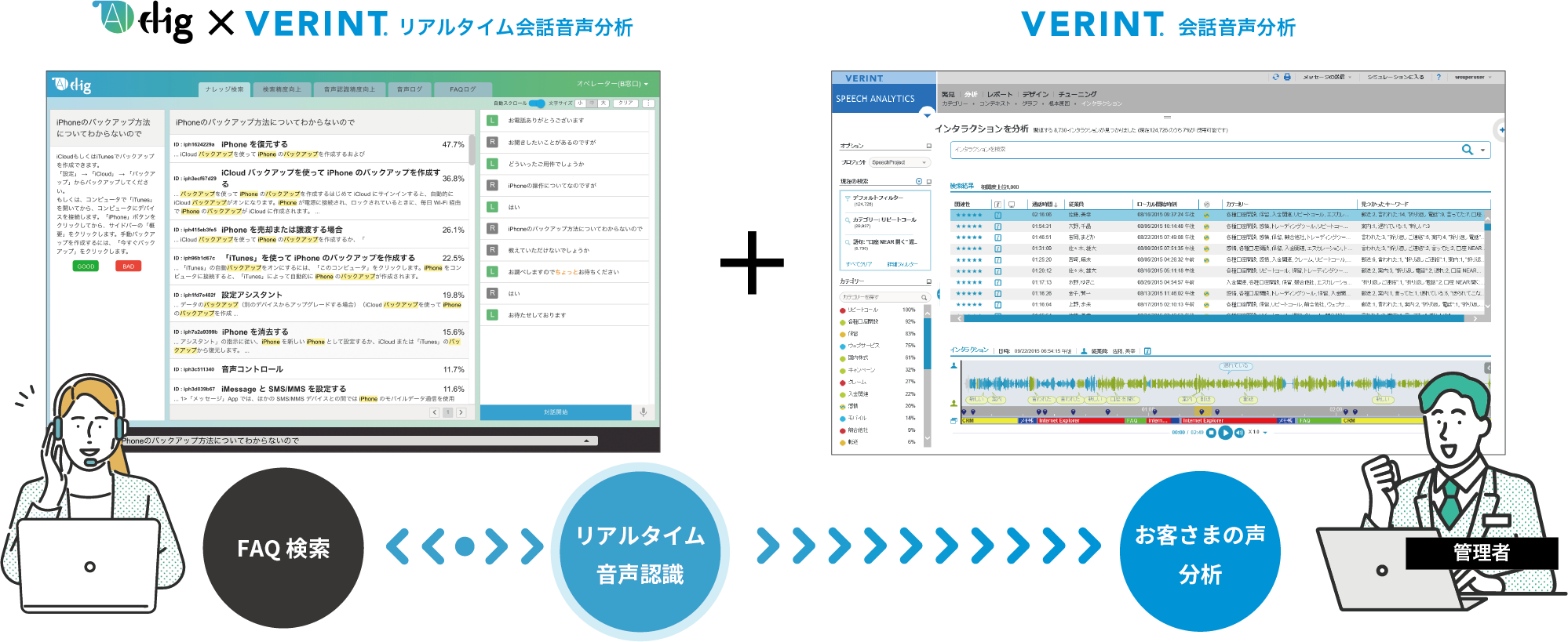 今回、コンタクトセンター向け通話録音システムで世界/国内共に高いシェアを誇るVerintの音声認識ソリューションを連携したことで、リアルタイムでテキスト化された会話内容の感情認識やさまざまな分析機能で多角的な分析を一元的に管理できるようになります。