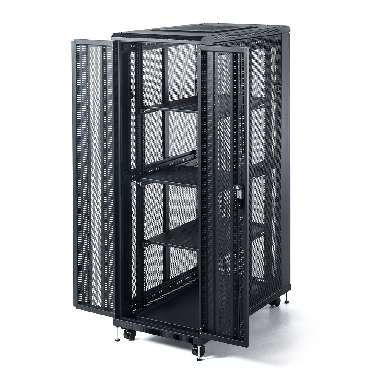 サーバーラック 19インチ ⼤型 36U 奥⾏110cm メッシュパネル 棚板×2枚 スライド棚×1枚付き 観⾳開き扉