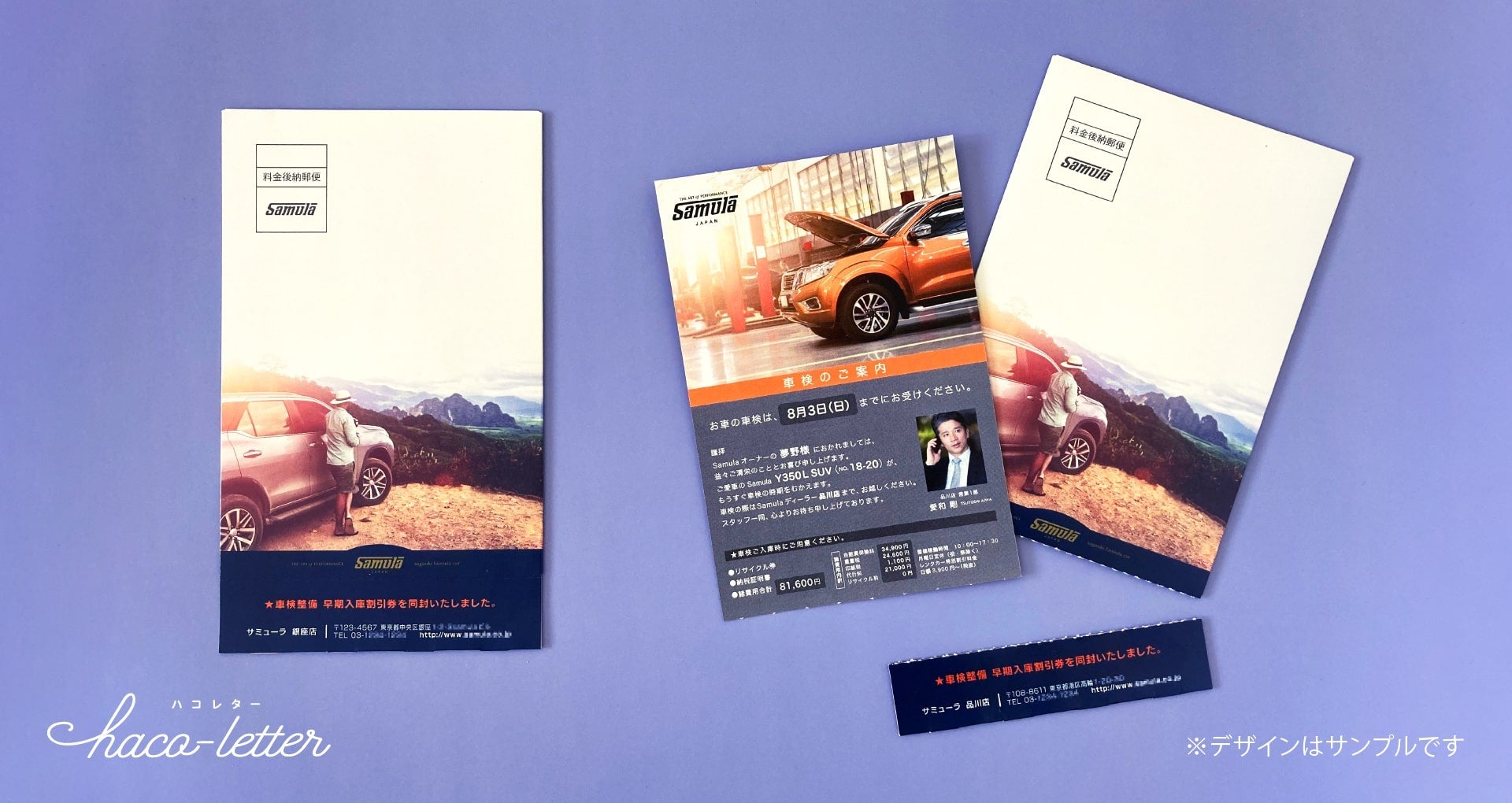 〈haco-letter ハコレター〉は高品質なデジタル印刷で、優良顧客の方と長く付き合っていきたいという想いを込めた「特別感」の演出におすすめの商品です。今回ご利用の自動車販売会社様では、優良顧客向けというターゲット設定と、お客様ごとの誕生日近くにお届けするというタイミング、お客様に喜んでいただけるプレゼント内容などを工夫いただいたことで高い反応率のDM施策となりました。