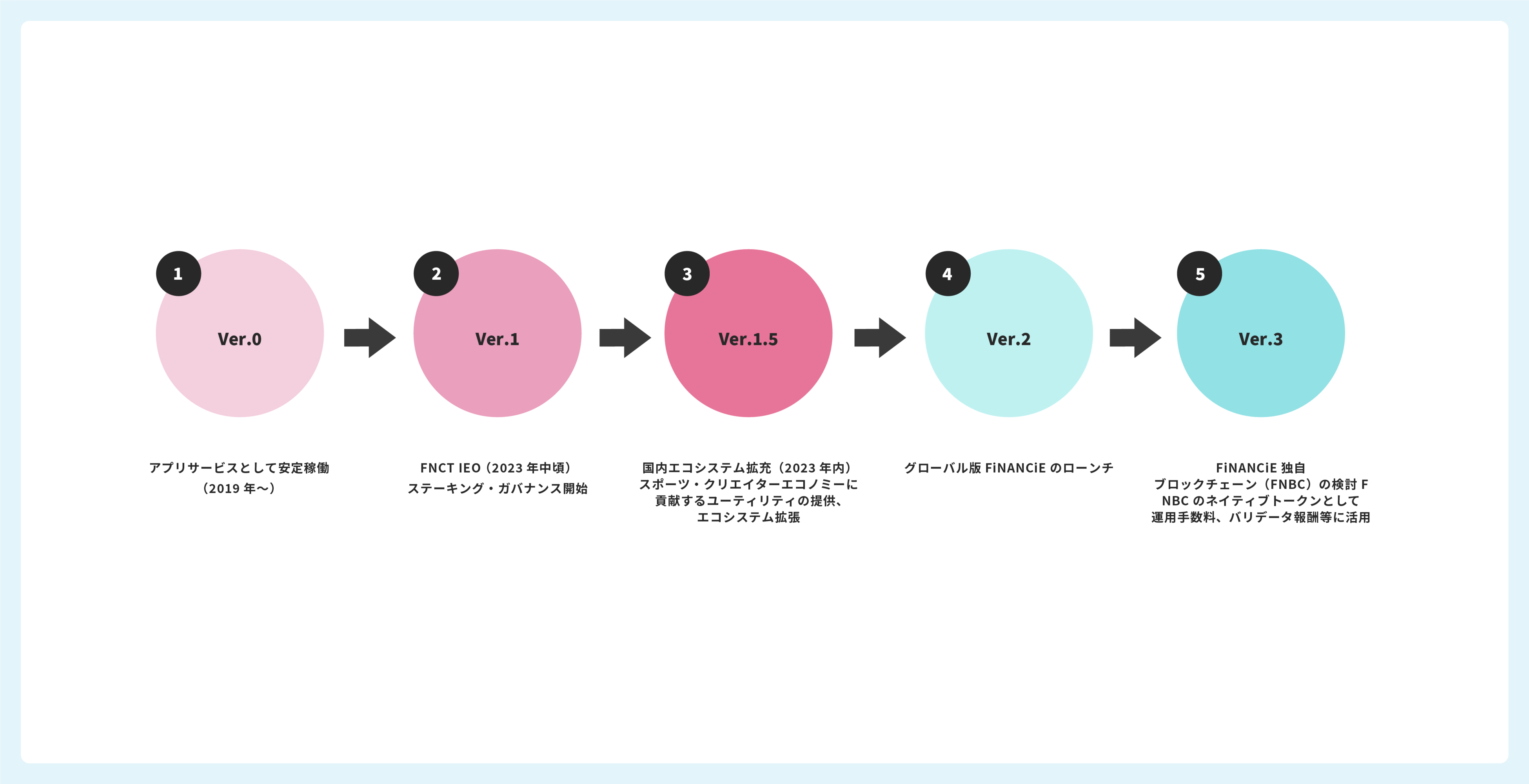 フィナンシェは、トークンエコシステムの形成・拡張を一気通貫で支援する国内唯一のWeb3プラットフォームとして、FiNANCiE事業およびNFT企画・支援事業、IEO支援事業を展開しています。領域もスポーツからエンタメ、地域創生などジャンルも拡大しており約200の個人や団体のトークン発行実績を有します。今後、フィナンシェトークン(FNCT)とFiNANCiE上で各コミュニティが発行しているコミュニティトークンを組み合わせることで、FiNANCiEのサービス内に閉じていたクリエイターエコノミーを拡張するだけでなく、FiNANCiEの海外版をリリースすることにより、グローバルエコシステムへ発展させることを目指します。