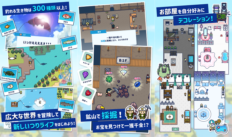 ▲『つりライフ+』は簡単お手軽なのに、釣りはもちろん、謎解きRPG、発掘、デコレーションまで全部遊べちゃう