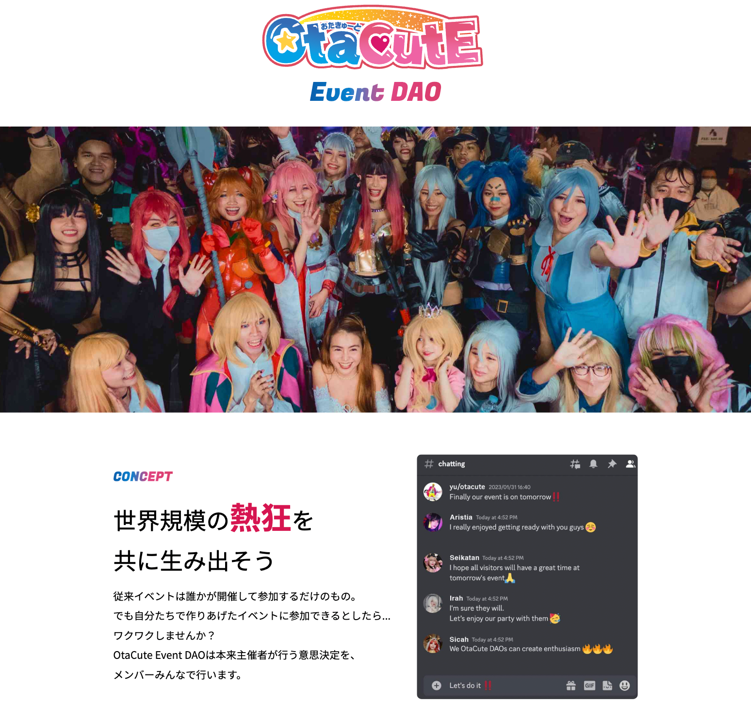 一方で、Otaske!のサポーターからは、作り手側として企画や運営に関わりたいという声も多く聞かれました。そのような声を受けて、双方向でイベントを作り上げ参加できる組織として立ち上がったのが「OtaCute Event DAO」です。