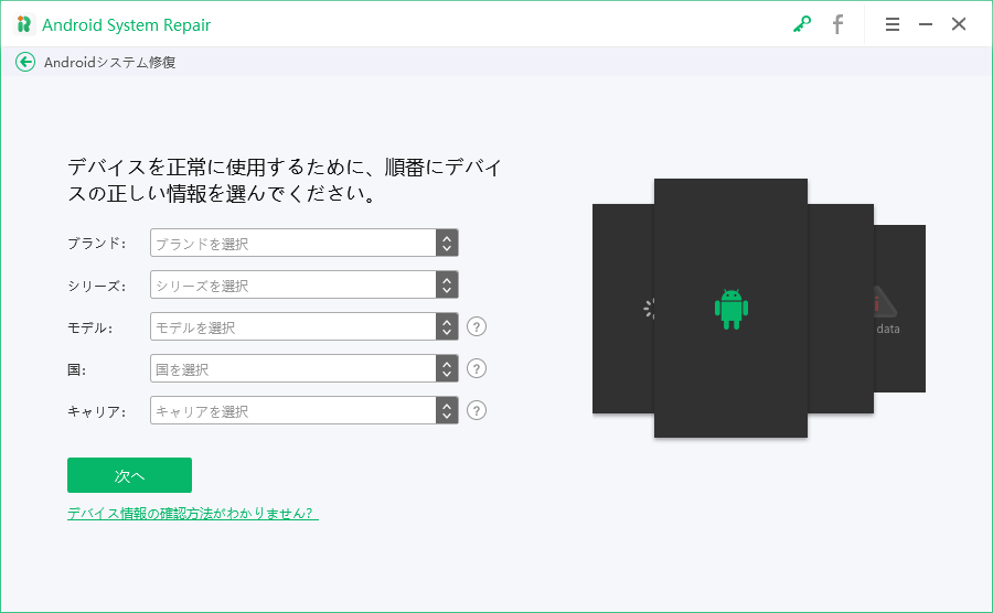 UltFone Android System Repairを使って、データの損失なくAndoroidリカバリーモードを解除する方法は、以下の通りです。