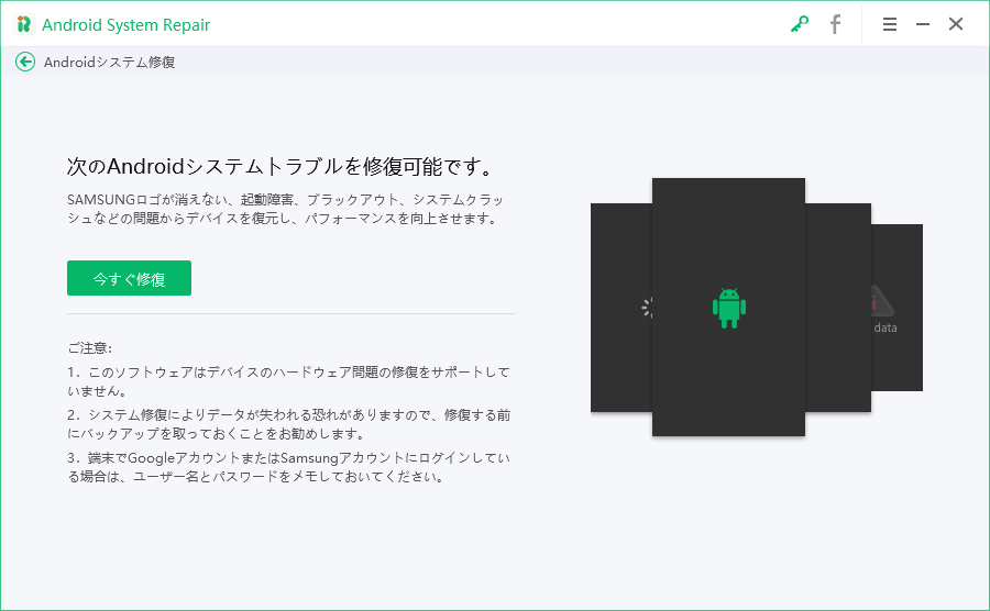 ここまでの方法で、Androidのリカバリーモードが解除できない問題を解決できなかった場合は、さらに高度な解決方法が必要です。こんなときこそ、信頼できるAndroidシステム修復ツールの出番です。