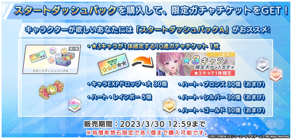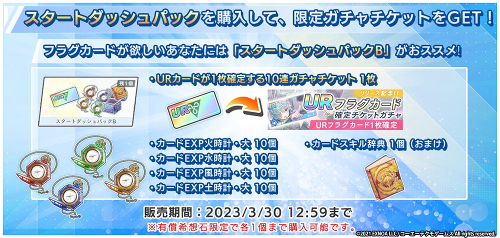 リリースを記念してお得なパック商品「スタートダッシュパックA」と「スタートダッシュバックB」を期間限定で販売いたします。お得なチャンスをお見逃しなく!