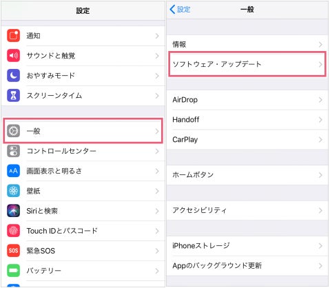- iPhoneの「設定」を開き、「一般」>「ソフトウェア・アップデート」と進みます。