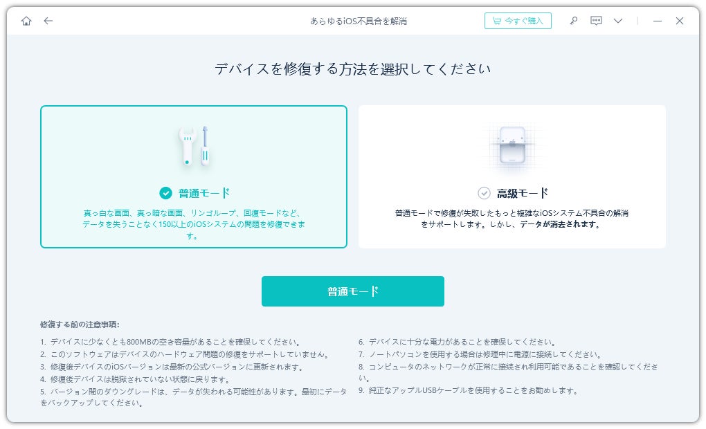 - 「普通モードを開始」をクリックし、iPhone iOSがアップデートされるのを待ちます。