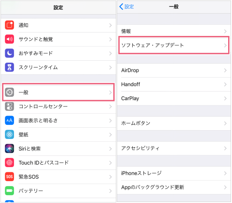 - iPhoneの「設定」を開き、「一般」>「ソフトウェア・アップデート」と進みます。