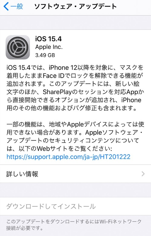 - 新しいアップデートがある場合は、「ダウンロードしてインストール」をタップして実行します。