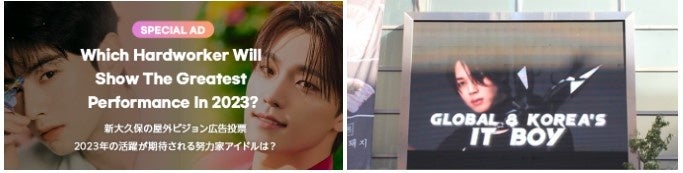 2023年1月25日(水)から2月7日(火)までの期間で開催した、「2023年の活躍が期待される努力家アイドルは?」の投票において1位に選ばれたBTSのメンバージミンさんの応援広告が、新大久保のK-PLAZA 1号館の屋外ビジョンで上映されます。