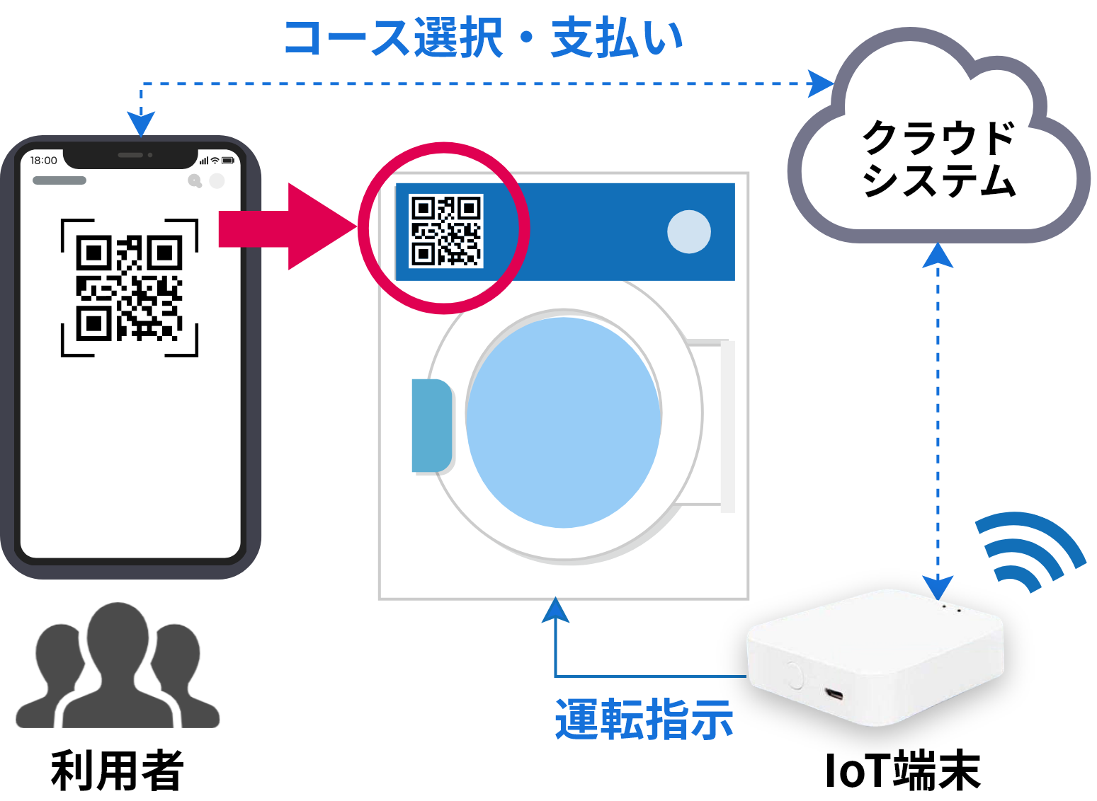 店舗様にとって初期費用や月額費用が抑えられるメリットがあるだけでなく、コインランドリーを利用されるお客様にとっても、自分のスマホでコースの選択から支払いまでの全ての操作を行え、より使っていただきやすくなりました。