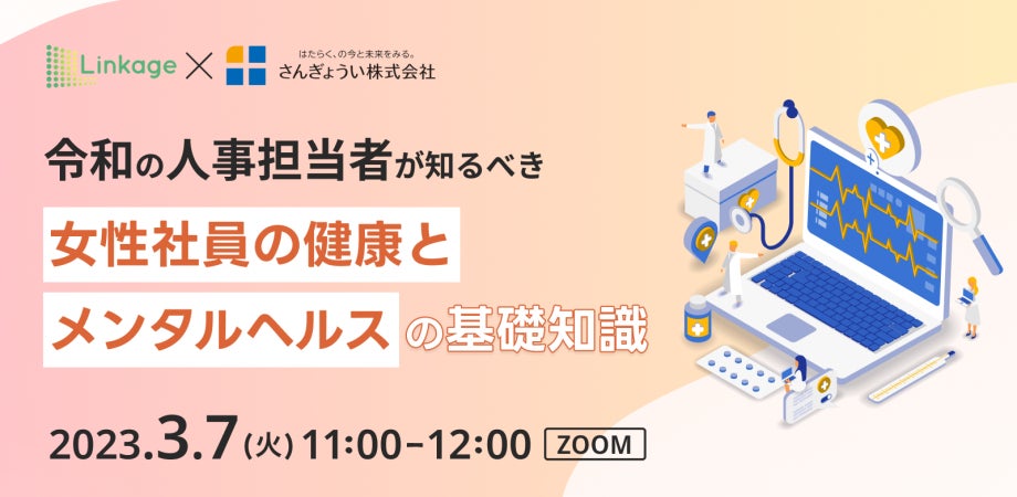 「令和の人事担当者が知るべき 女性社員の健康とメンタルヘルスの基礎知識」と題するウェビナーを3月7日11時から開催いたします。本セミナーでは、メンタルヘルスと女性の健康課題に取り組む上で企業が抑えておくべき基礎知識をお伝えいたします。ぜひご参加ください。