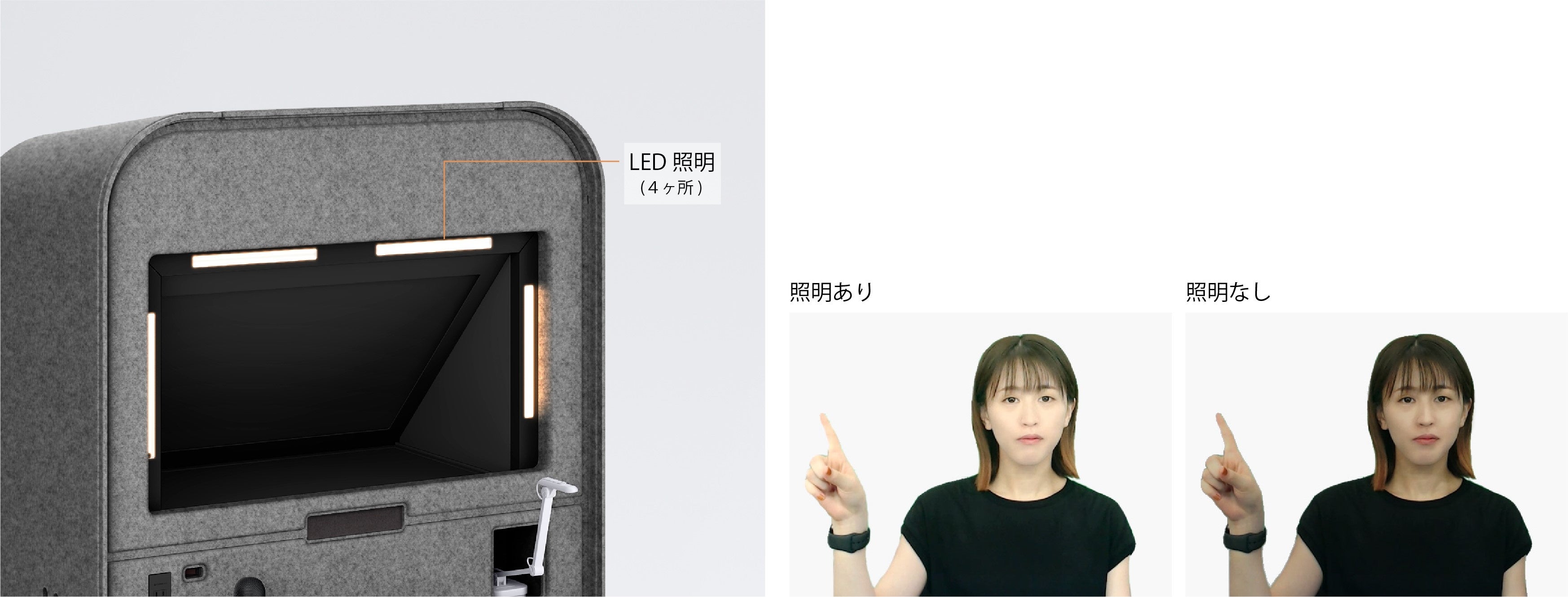 照らすアプリ上の補正では限界がある明るさ調整も、上部と左右のLED照明で明るく自然な表情を映し出すことができます。