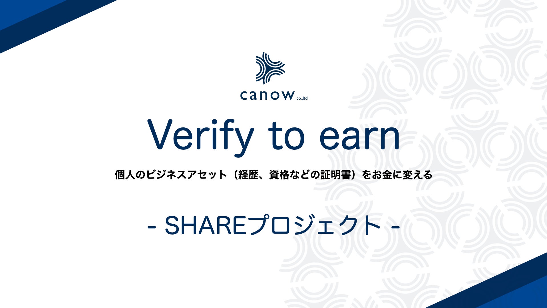 canow株式会社、canow chainのリリースを控え、Web3.0時代における職務経歴や履歴、資格などの情報を報酬に変える「Verify to earn」を実現するSHAREプロジェクトを公開。