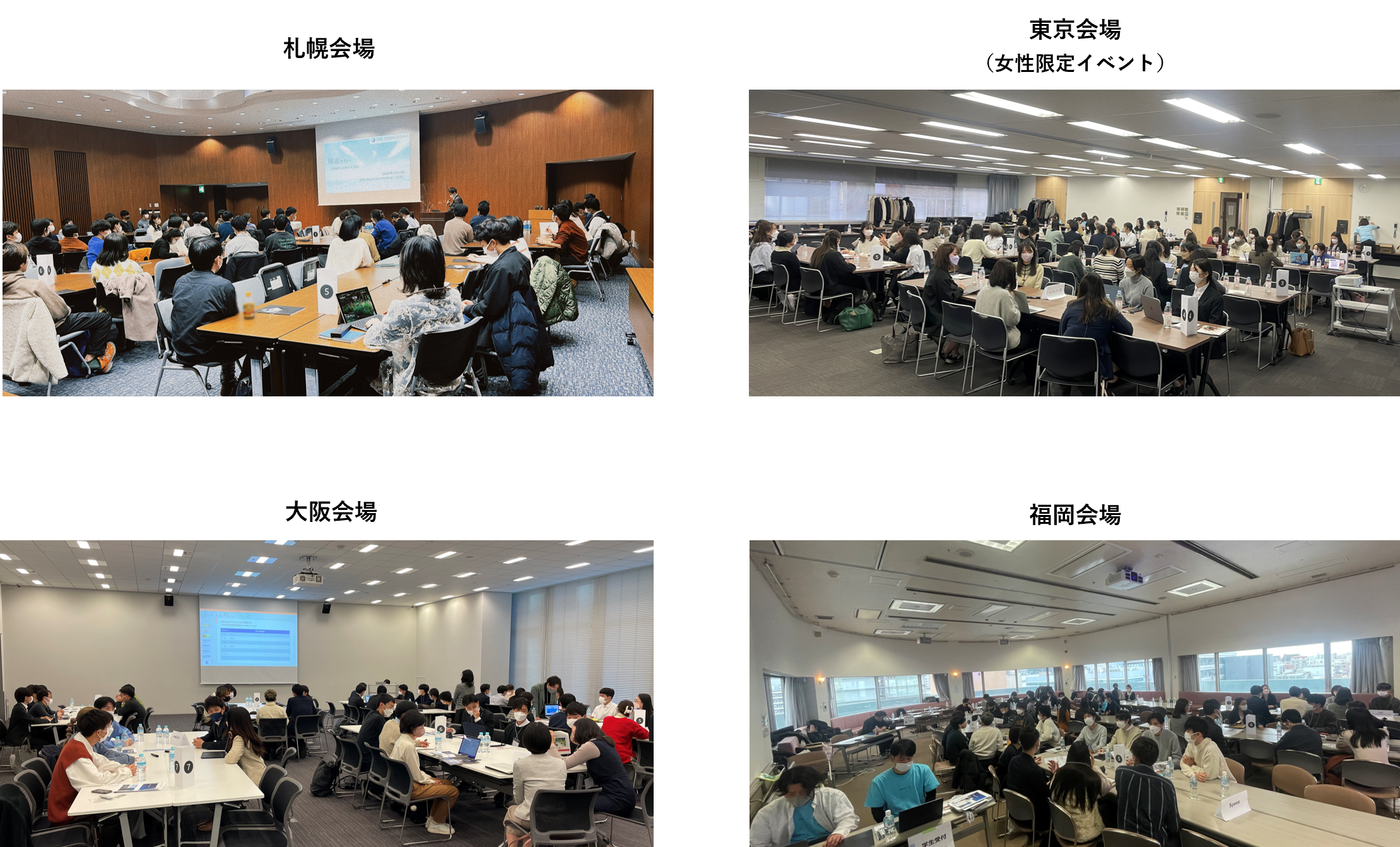 2025年卒業見込みの学生を対象に、2023年3月から4月にかけて、札幌、仙台、東京、名古屋、大阪、京都、福岡の全国7都市にて開催いたします。