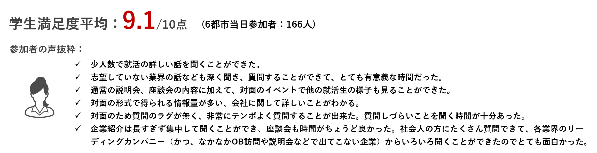 ※1…2023年1月に開催したJOB Discovery Meetupの学生満足度平均:9.1点(10点満点)