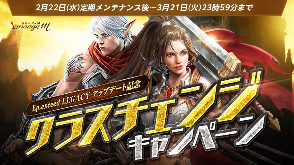 「騎士」と「ダークエルフ」のクラスケアを記念して、ゲーム内「ショップ」にてクラスチェンジに必要なアイテム「クラスチェンジ(騎士/ダークエルフ)」を購入すると、指定したキャラクターのキャ ラクター名と経験値を維持したまま職業を「騎士」または「ダークエルフ」に変更できる、「クラスチェンジキャンペーン」を開催します。