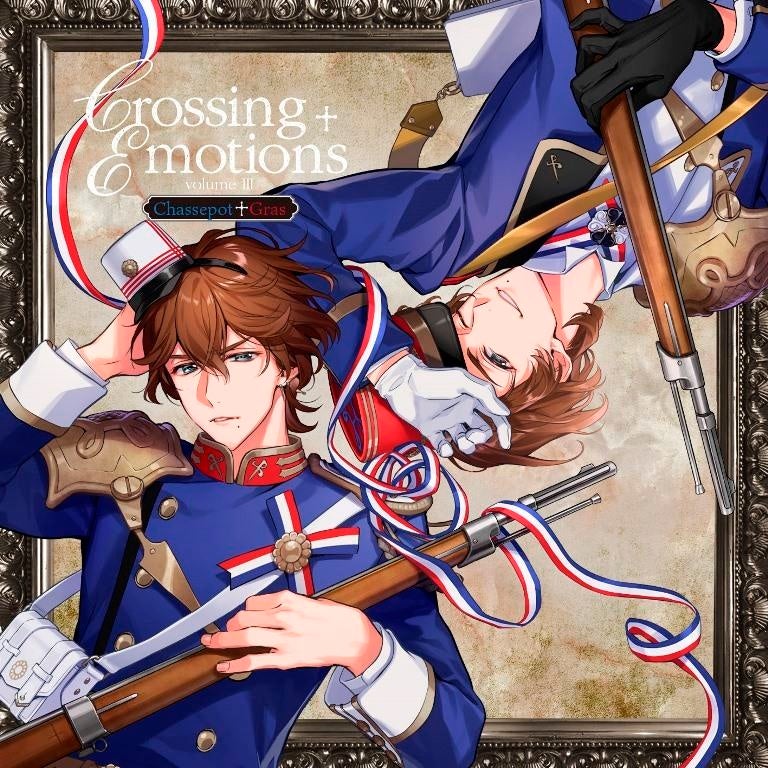 「Crossing Emotions volume III」ではフランスグループのシャスポー(江口拓也)、グラース(寺島拓篤)をフィーチャー。キャラクターイラストの真久描きおろしによるジャケットイラストにも注目です。