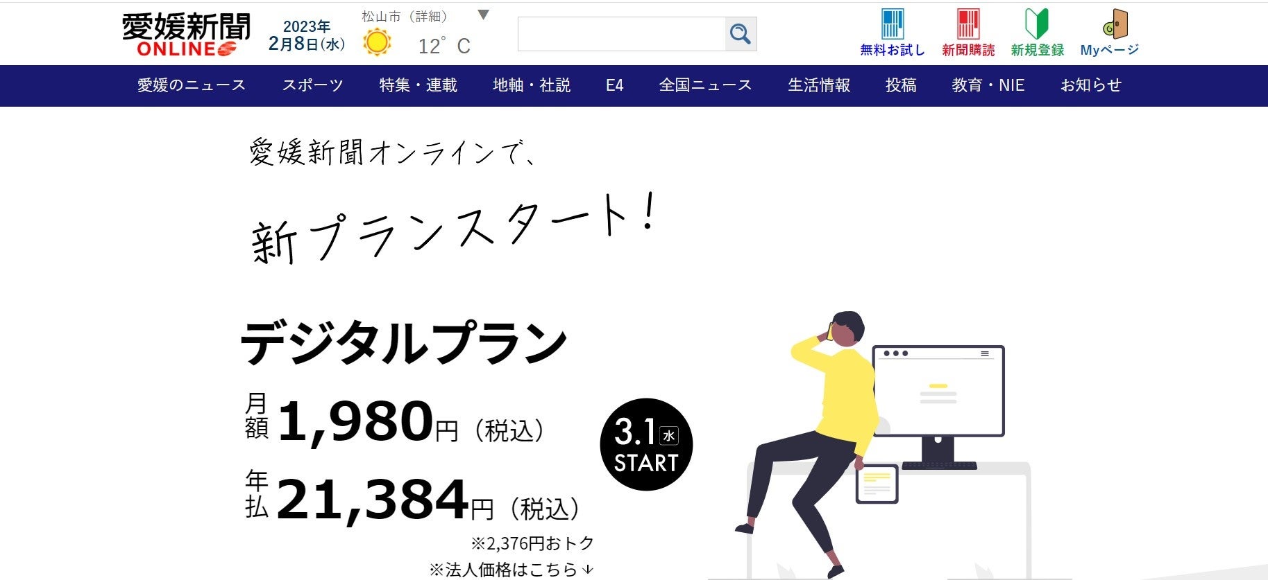 「愛媛新聞ONLINEデジタルプラン」紹介ページ