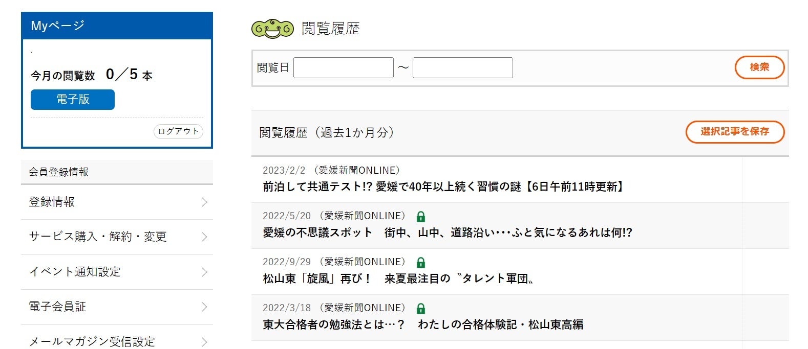 - 過去1カ月にご覧いただいた記事が一覧で確認可能な「閲覧履歴」