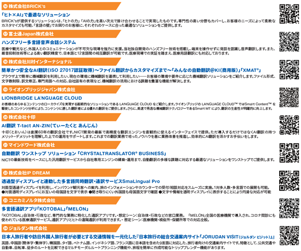 ・今後も、多言語翻訳技術を通じて、訪日、在留外国人との共生社会の実現や企業のビジネスチャンスの拡大や、海外連携の促進を図り、国内外での経済・社会活動において日本の価値と魅力を高めていく取り組みを進めていく。