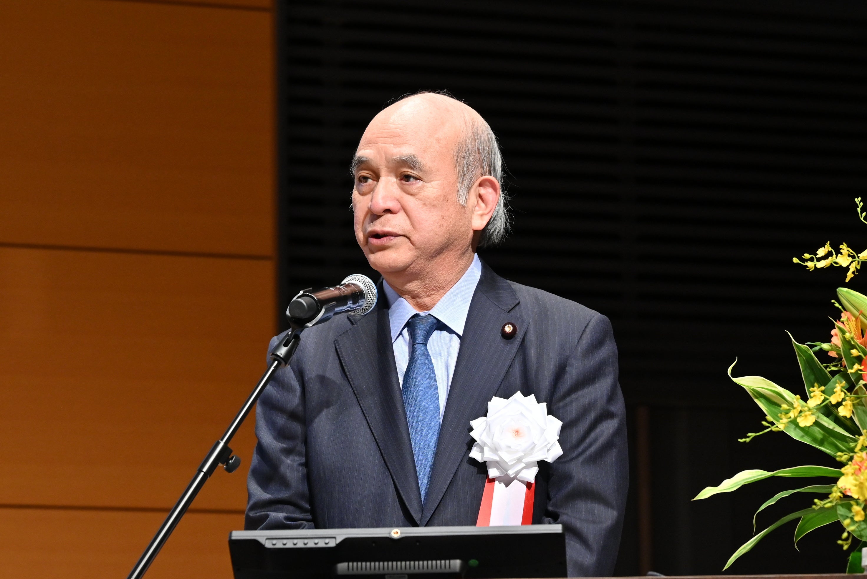 つづいて、主催者を代表して、総務省 柘植芳文副大臣より挨拶を行いました。