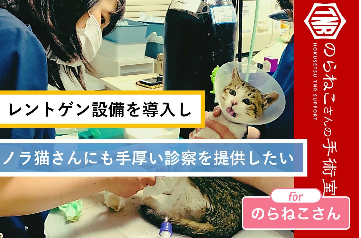 そんな中、「ケガをしているノラ猫さんの治療をしてほしい。」という相談がここ数年多く寄せられるようになってきたことを背景に、レントゲン設備をのらねこさんの手術室に導入し、病院内で診察を完結させることで、低価格で手厚い診療をノラ猫さんたちに提供することを目指して本プロジェクトの開始に至りました。