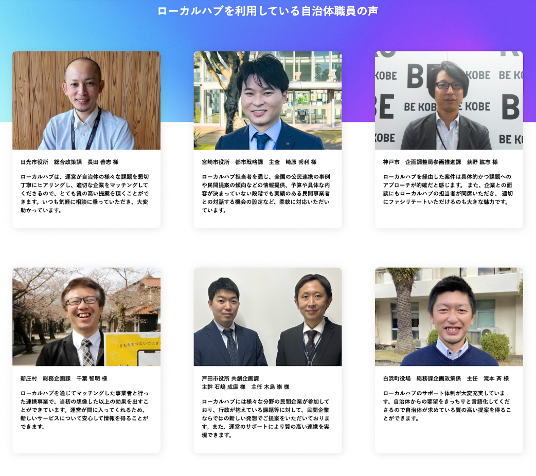 現在、官民連携に関する何かしらのサービスを展開されている方は、もしかしたらローカルハブを競合として認識されており、リサーチのためにここに辿り着いた方もいらっしゃるかもしれません。