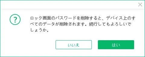 Step 3、「開始」をクリックし、「ロック画面のパスワードを削除すると、デバイス上のすべてのデータが削除されます」と表示されたら「はい」をクリックします。
