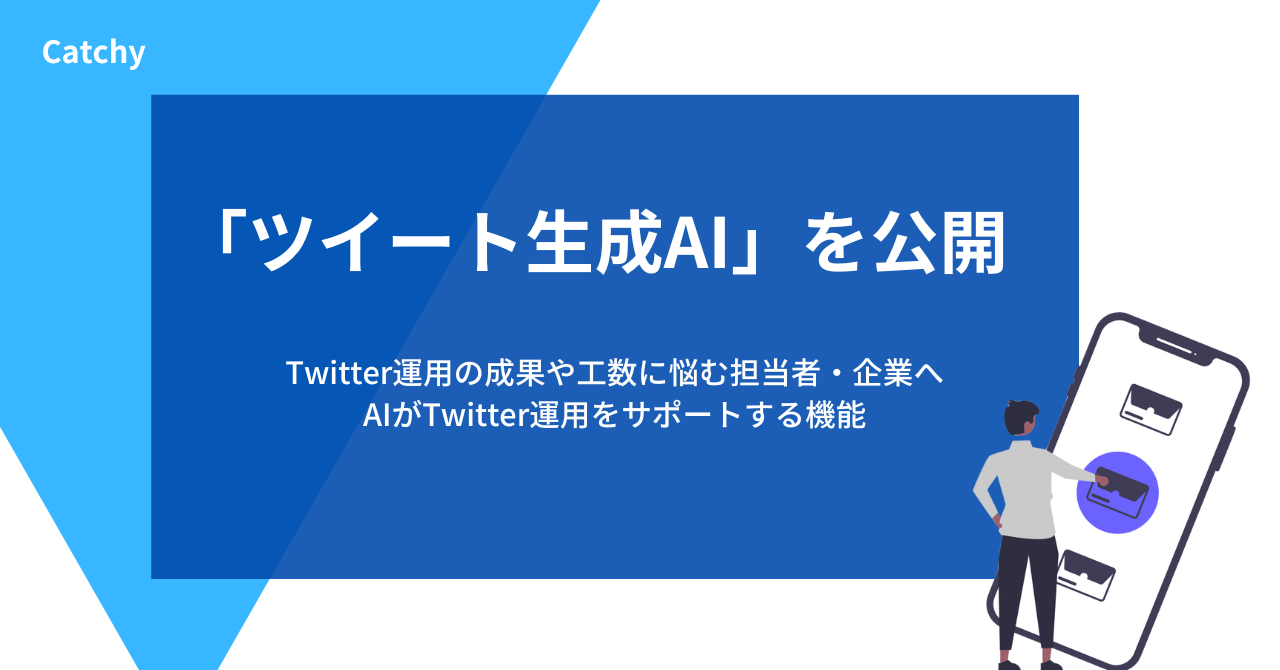 こうした声を受け、AI ライティングアシスタント「Catchy(キャッチー)」はTwitterを効果的、継続的に運用できずに悩む方々に向けて、「ツイート生成AI」機能の開発を開始しました。