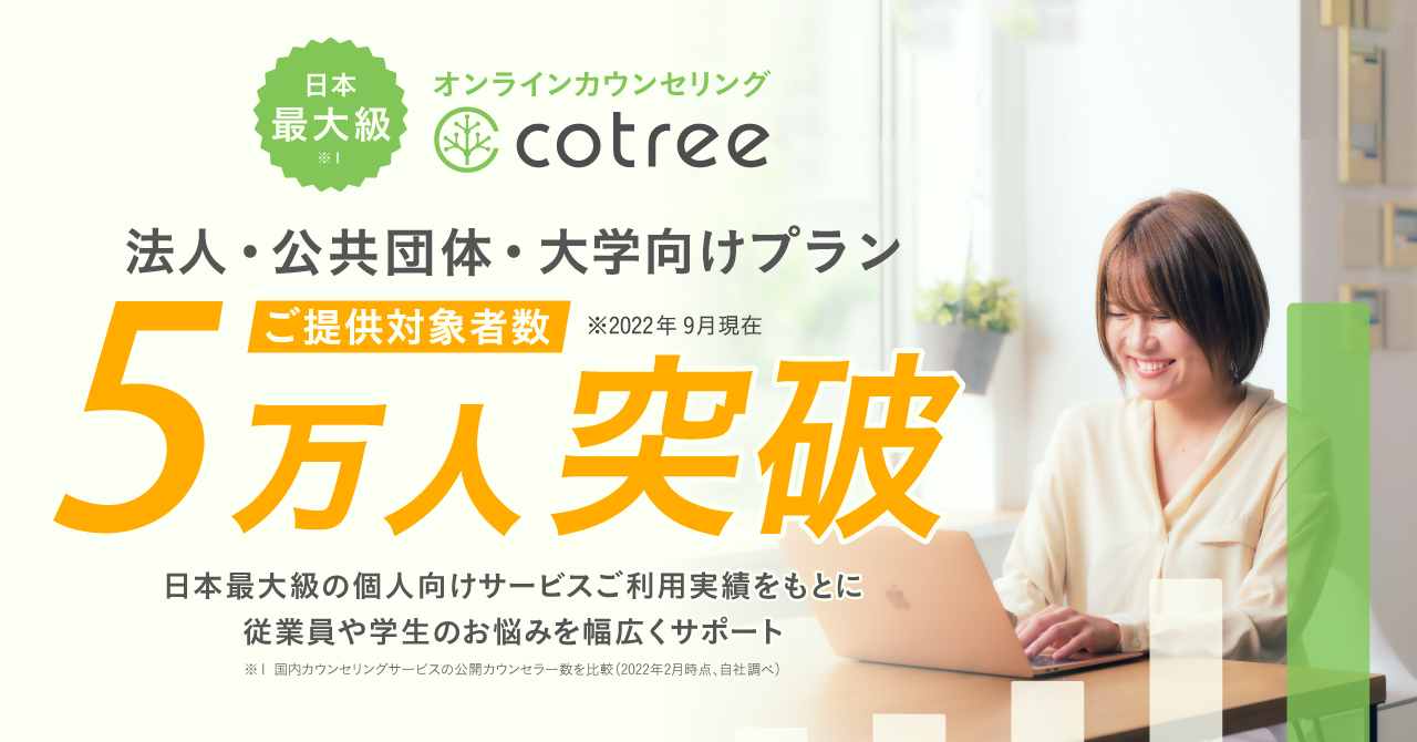 日本最大級のオンラインカウンセリングサービス「cotree(コトリー)」