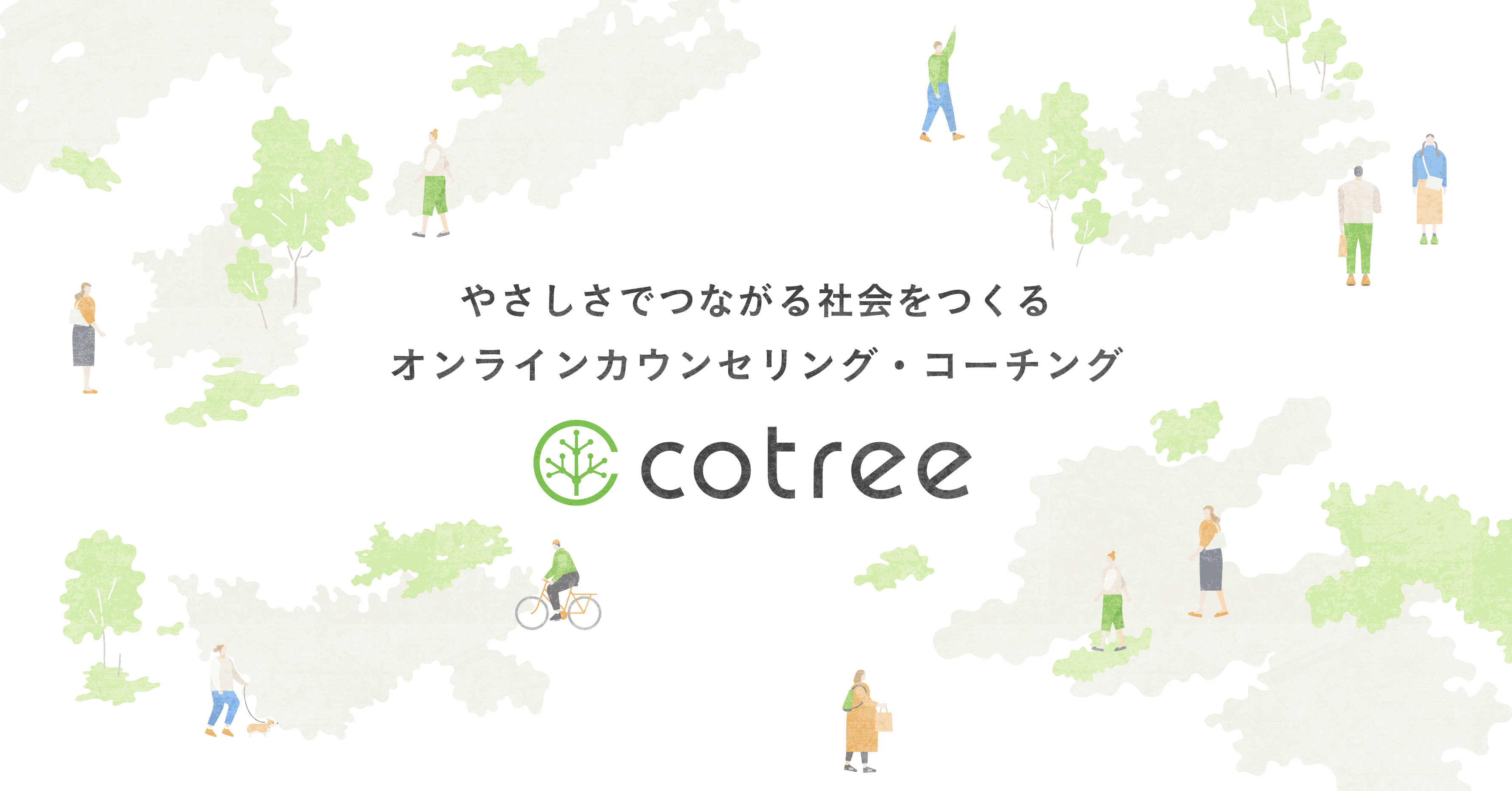 株式会社cotreeは、「やさしさでつながる社会をつくる」を企業理念とし、メンタルヘルスケアのインフラを目指し、2014年の設立以来、オンラインカウンセリング・コーチングを中心に「メンタルヘルス x IT」の領域で事業およびサービスを展開しています。